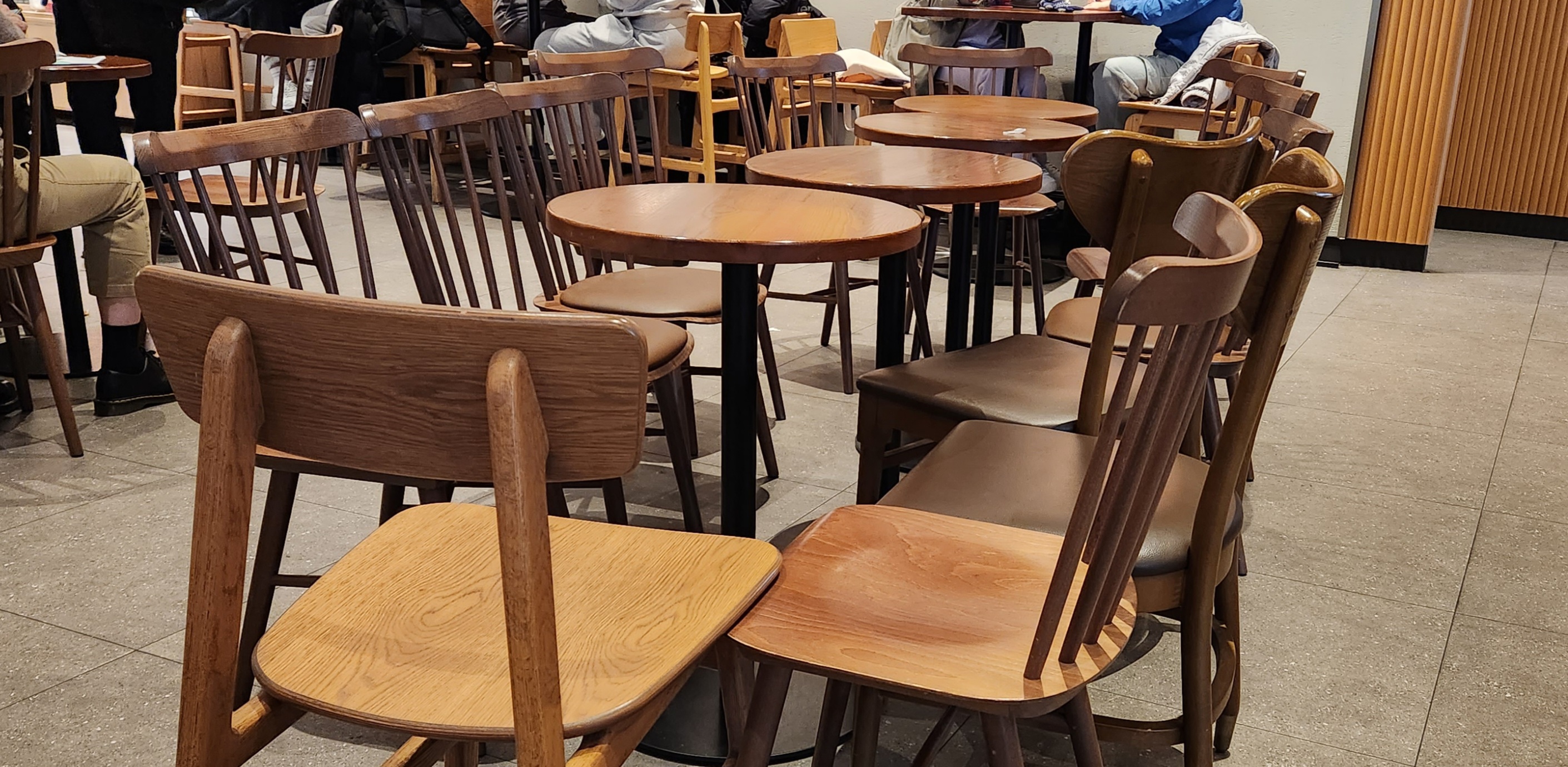 내가 커피를 받으로 간사이 내 테이블에 있던 의자들 중에 내 짐이 있는 의자를 제외한 모든 의자들을 모두 들고 간 것이 아닌가??